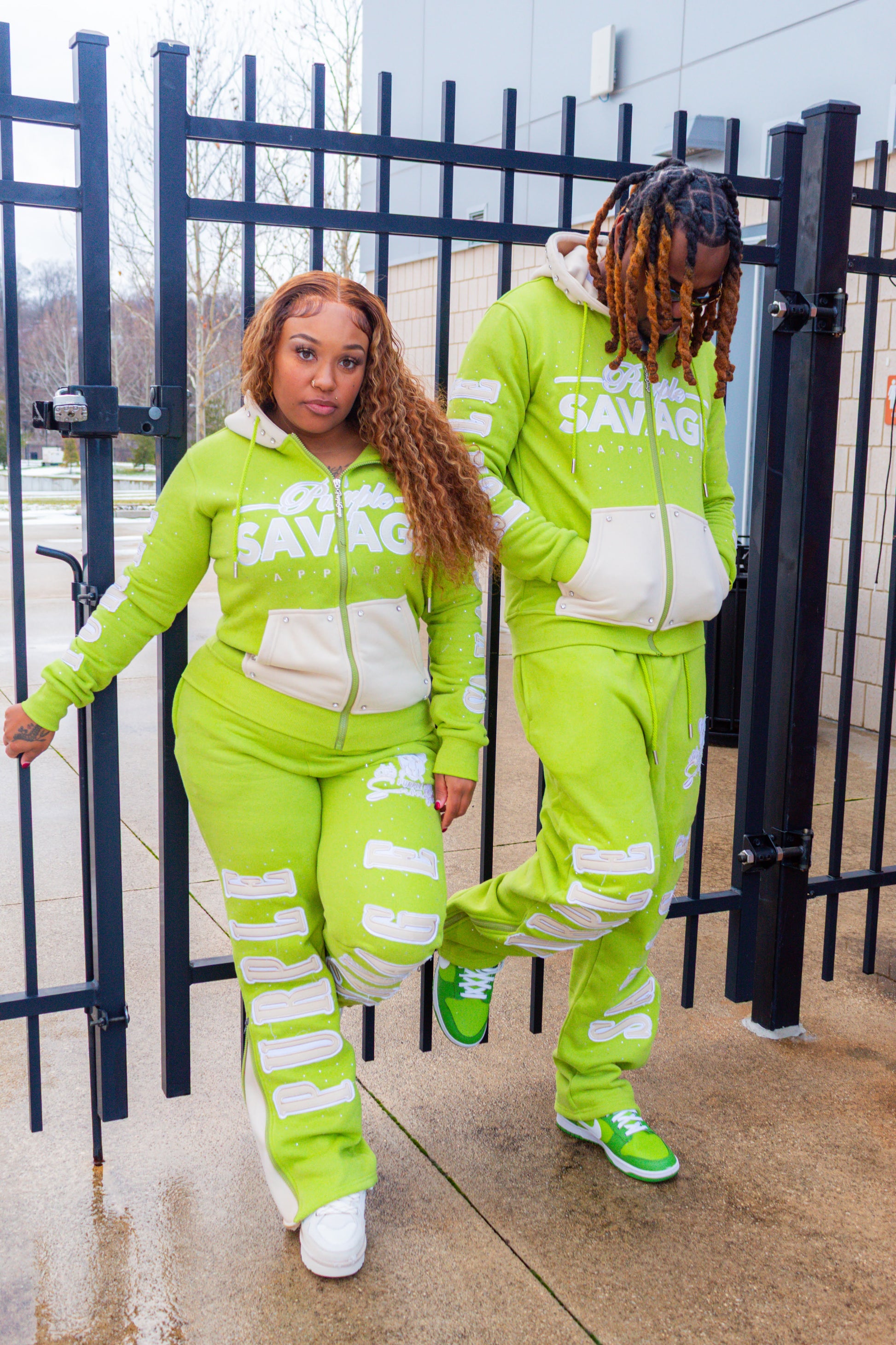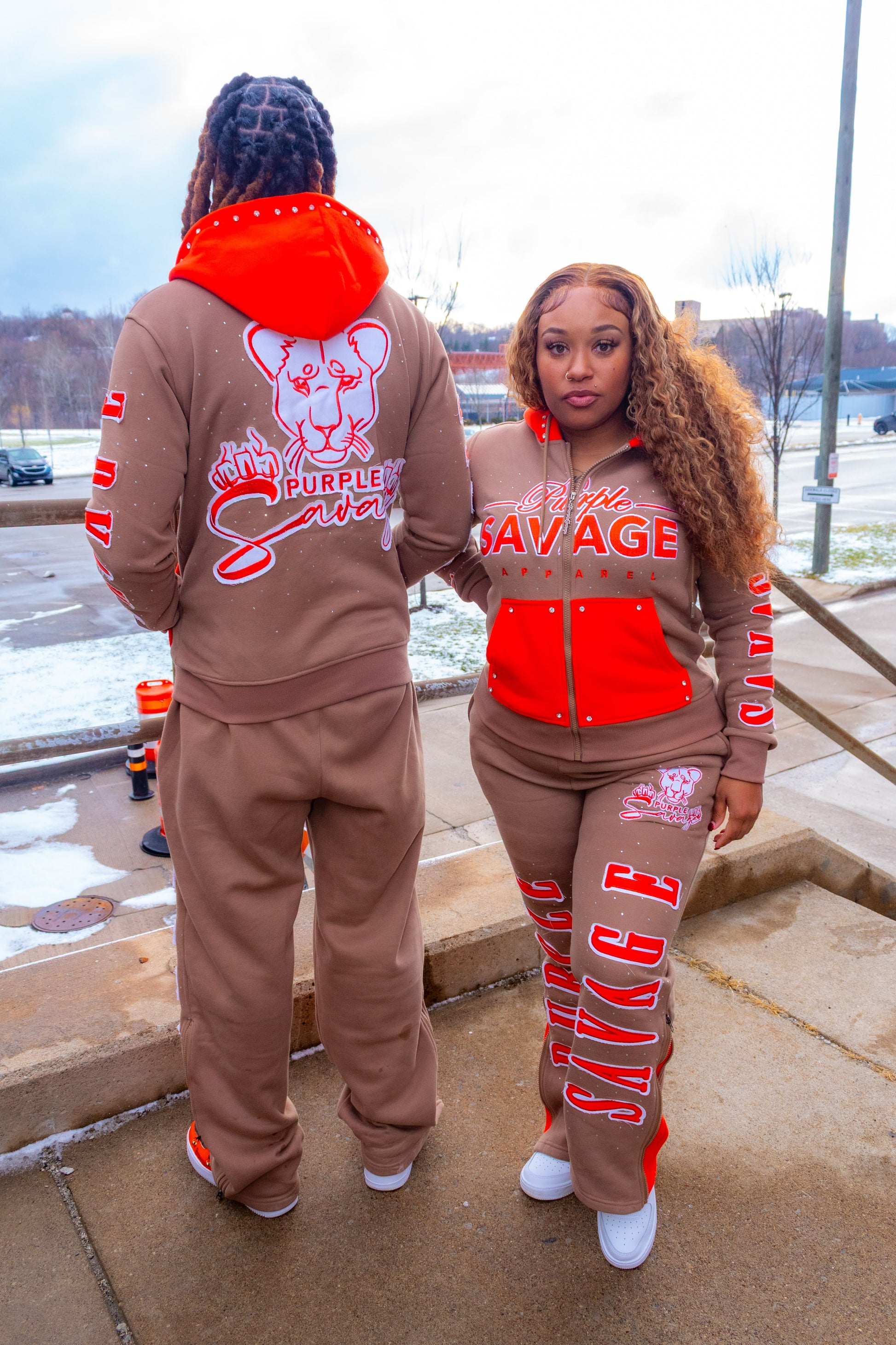 "Up your style game with our Unisex Rhinestone Flared Jogger Sets. Featuring our Signature OG lion logo and covered in sparkling rhinestones, you'll stand out in any crowd. Made with high-quality materials, these jogger sets are both fashionable and comfortable. Perfect for any occasion."
